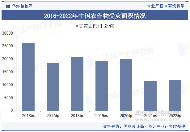 中国是一个天然灾祸多发的国度,各类灾祸(干旱,洪涝,风雹及冷冻等)每年都给国度形成数千亿元的经济丧失,2022年夏日长江流域高温干旱,东北地域南部农田渍涝灾祸偏沉,对农产物出产形成必然影响,农做物受灾面积12071。6千公顷。