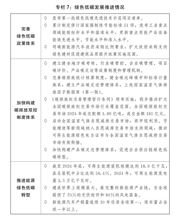 (九)坚持不懈推进生态文明扶植,全面绿色转型取得积极进展。出台加速经济社会成长全面绿色转型的看法,持续深切打好污染防治攻坚和,积极稳妥推进碳达峰碳中和,鼎力实施全面节约计谋,斑斓中国扶植成效较着。