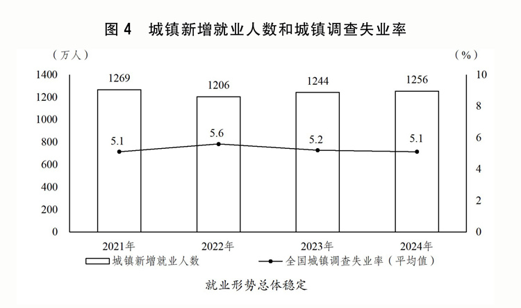 一是稳就业促增收取得积极成效。出台实施就业优先计谋推进高质量充实就业的看法。延续实施赋闲安全援企稳岗政策,优化整合吸纳就业补助和扩岗补帮。强化高校结业生、脱贫生齿、农人工以及就业坚苦人员等就业帮扶。实施高校结业生等青年就业办事攻坚步履、先辈制制业促就业步履和百万就业见习岗亭募集打算,建立高校结业生高质量就业办事系统。加鼎力度支撑公共实训扶植,持续做好沉点人群技术培训。做好退役甲士就业办事保障,提高优抚补帮尺度。城镇新增就业1256万人,城镇查询拜访赋闲率平均为5。1%。全国居平易近人均可安排收入现实增加5。1%。城乡居平易近人均可安排收入比为2。34,城乡居平易近收入相对差距继续缩小。指点处所上调最低工资尺度。向坚苦群众发放一次性糊口补帮,惠及1100多万人。