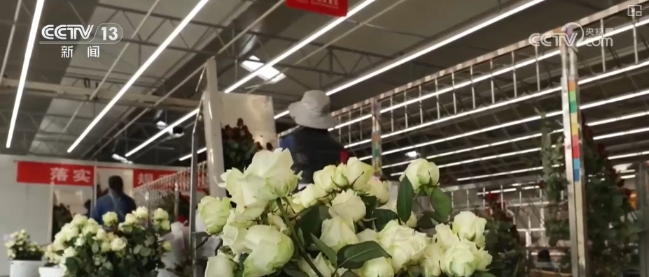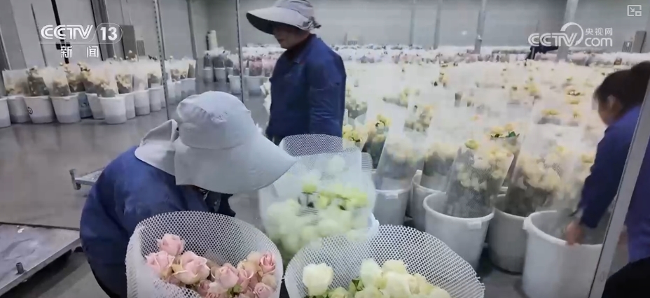 正在这个分拣包卸车间,100多名工人正正在对处于半休眠形态的玫瑰进行包拆。按花头大小、花色深浅详尽归类后,这些新颖的玫瑰当天就被送往全国各地。