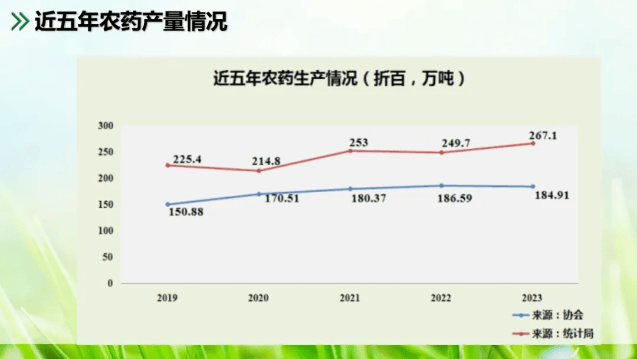 2014-2019 年,我国通过地盘、环保等政策办法严酷节制资本华侈、“三废”排放量大、污染严沉的农药新减产能,能耗高、手艺程度低、污染物处置难的农药产物的出产转移,加速掉队产能裁减。期间我国农药原药产量下滑,这是我国农药行业逃求高质量成长的成果。2020年以来,跟着满脚复产前提企业数量的添加和新产能逐渐,农药全体供应好转。2021-2022年,农药企业开工率不脚,农药供无限,叠加上逛原材料跌价,最终农药价钱大幅上涨带动农药市场进入高景气阶段。2023 年以来,跟着新冠疫情管控终结,市场预期经济强劲反弹,农药行业投资再次兴起,农药产物进入新一轮产能扩张,热点产物规划投建产能持续增加。按照监测,杀菌剂 17。84万吨/年、除草剂 24。21万吨/年、两头体 113。5万吨/年以及制剂 53。64 万吨/年。投资最热品种包罗除草剂草铵膦(精草铵膦)、烯草酮;杀虫剂氯虫苯甲酰胺、啶虫脒和联苯菊酯;杀菌剂丙硫菌唑、吡唑醚菌酯。规模化产能集中导致阶段性供给过剩,企业合作激烈。