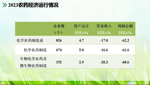 农药去库周期,行业无望送来底部反转。美国 2021 年进口农药 40。92 万吨,是世界上第二大农药进口国(仅次于 2021 年进口农药 44。55 万吨的巴西),其农化库存正在全球市场中具有代表性。2023 年美国全体农化库存比拟 2022 年有所下降, 2024 年一季度美国履历一轮去库高峰后,库存爬升趋缓,将来无望逐渐回归合理程度。此外,我国出产农药量中70%-80%为出口导向,2023 年以来我国农药出口有所回升,2024 年跟着国际市场库存的逐渐消化完成,估计下半年国际市场对中国农药的进口会持续添加。农药行业反面临着史无前例的转型压力。为了连结合作力并实现可持续成长,农药企业须从保守产物思维转向顾客思维。这不只要关心当前的市场需求,更要预测将来的趋向,进行久远规划。一方面需要亲近关心国内和国际市场动态和科技前进,通过合做取并购,引入先辈的手艺和产物,不竭丰硕产物线,提高产物的手艺含量,以便更好的办事顾客。另一方面,积极鞭策本人走出去,让本人产物惠及世界人平易近,让产物办事更广漠的世界市场,并获得较好的利润空间。当前,良多企业都正在逐渐的转型和升级,曾经从上逛出产范畴快速转递到了终端市场,农药行业起头进入全面的深度转型升级历程。“to C”的时代曾经到临,企业可操纵这个契机,逐渐实现由TOB营业下沉至TOC的营业冲破,从保守的出产导向改变为市场导向,不竭地强化市场认识,树立市场不雅念,把握市场纪律。将市场需求做为鞭策成长的焦点力量,确保营业决策和计谋规划都慎密环绕市场需求展开。如许有帮于企业不竭深切研究市场动态,洞察消费者需求,制定好的产物和办事,进一步安定的客户关系,从而加强客户忠实度。虽然化学农药正在市场占比力大,也能起到立竿见影的影响,可是从近几年的成长趋向看到,全世界起头逐渐削减化学农药的利用,拜耳、科迪华、把握生物农药市场成长机缘。因而,企业可继续考虑和生物农药协同成长,二者不只可构成劣势互补,还能够构成产物篮子,如许不只能扩展品类,并且能加强企业抗风险能力,推进企业可持续成长。跟着农业科技的不竭前进和市场所作的加剧,农药行业反面临着史无前例的挑和。正在这个快速变化的时代,农药企业老旧产物被替代的风险日益凸显,出格是先辈产物代替原有支流市场产物,最终可能带动全财产翻天覆地的变化。因而,企业需要连结高度,不竭储蓄手艺和产物,不竭加强产物梯队扶植,确保正在市场中连结合作力和可持续成长能力。前往搜狐,查看更多?。