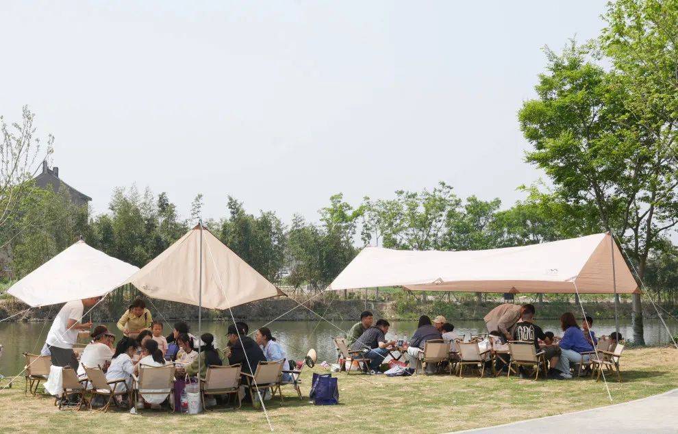 旧日村里的家宴核心,摇身一变成为融合“本帮”“徽派”风味的枫林小馆,以村落炊火气满脚门客的味蕾需求;闲置农房入股乡野文化公司,建成漾里花圃营地,集野趣土灶饭、丛林下战书茶、水上撒欢、火盆烧烤于一体。